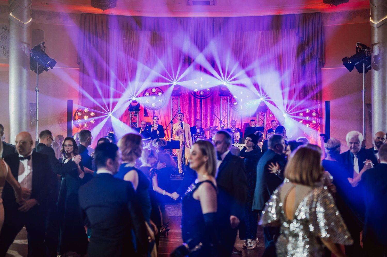 Wydarzenie realizujemy we współpracy z WK Pasternak, Big Belfer Band oraz Mobile Studio 80. Na scenie pojawia się 16-osobowy big band, który nadaje wieczorowi charakter koncertu na żywo — nie muzyki w tle, ale pełnoprawnego show. Dynamiczna reżyseria światła i sceny dopasowuje się do każdego momentu wieczoru: inaczej wygląda powitanie gości, inaczej kulminacja programu artystycznego, inaczej odliczanie do północy.